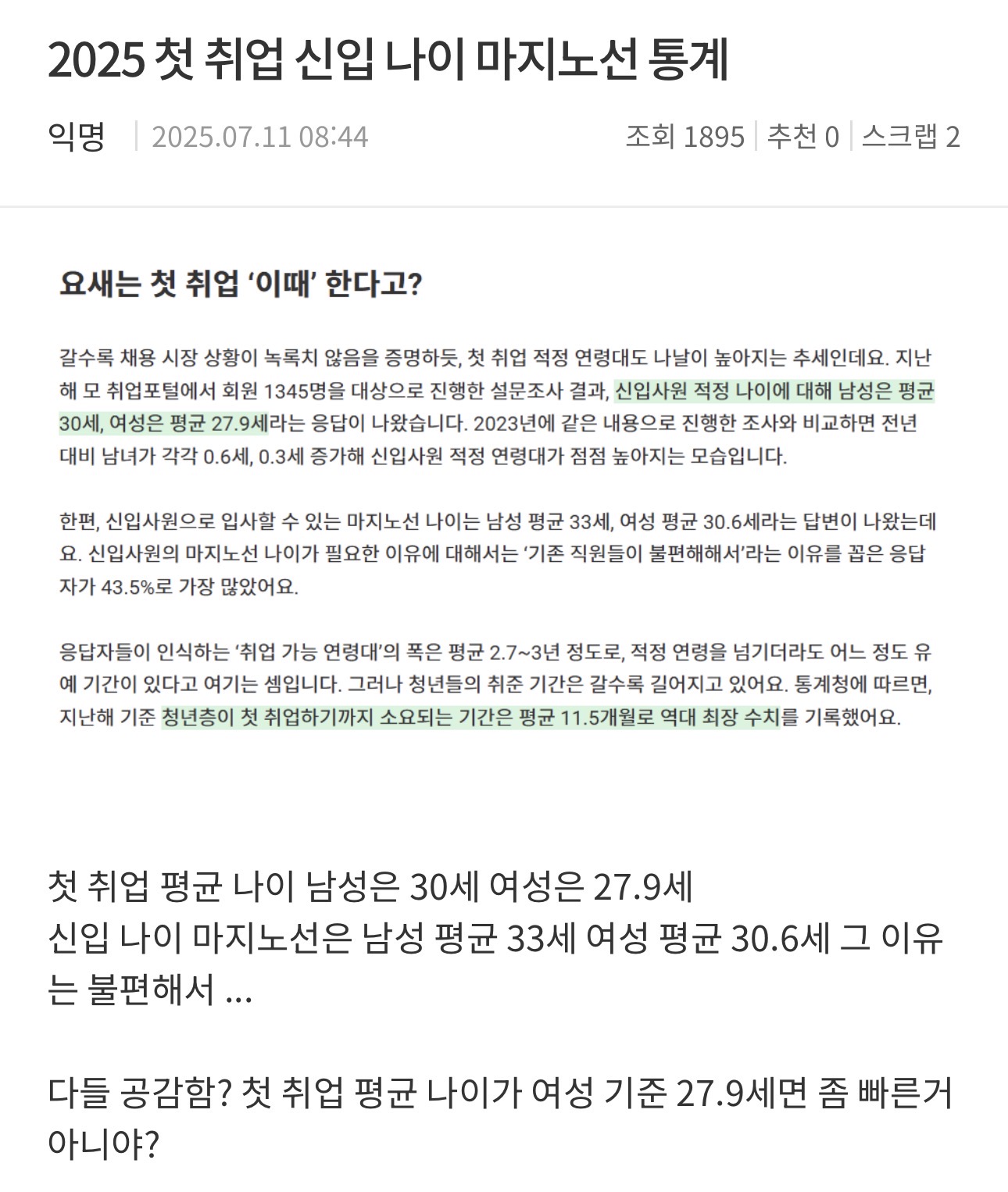 다들 첫 취업한 나이가 언제야?