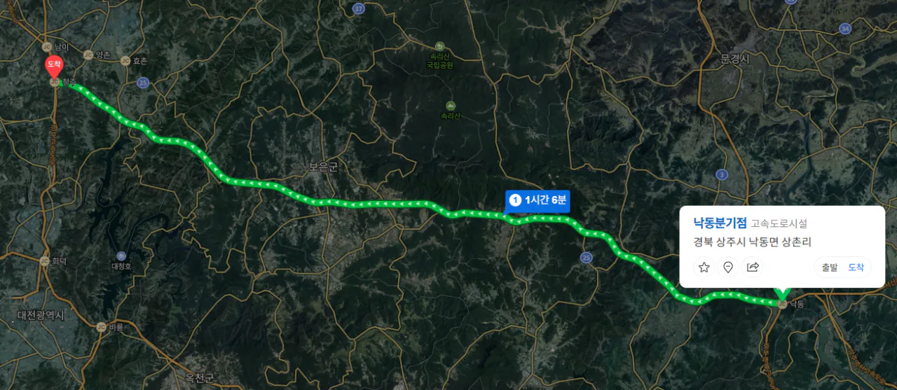 서산 영덕고속도로의 낙동 JC쪽에서 올려가지고