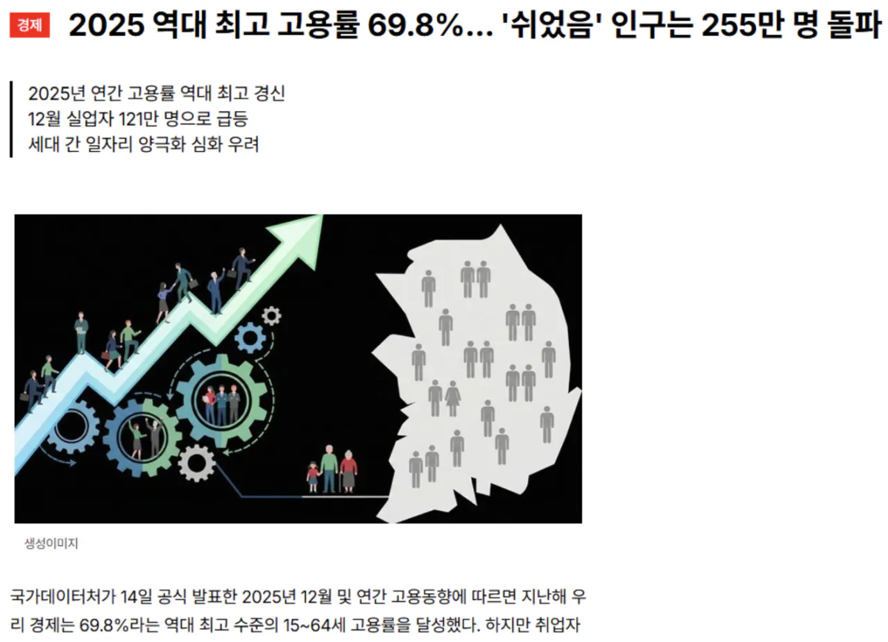 통계) 2025년 역대최고 고용률 69.8%