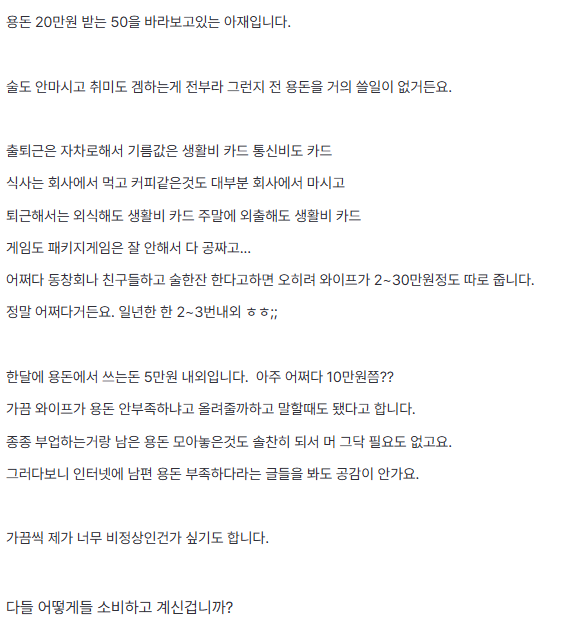 용돈 20만원으로 생활한다는 곧 50세 된다는 아저씨