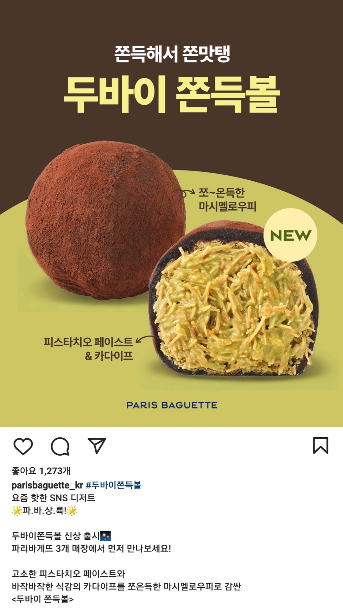 "두바이쫀득볼" 파리바게트 신상 출시