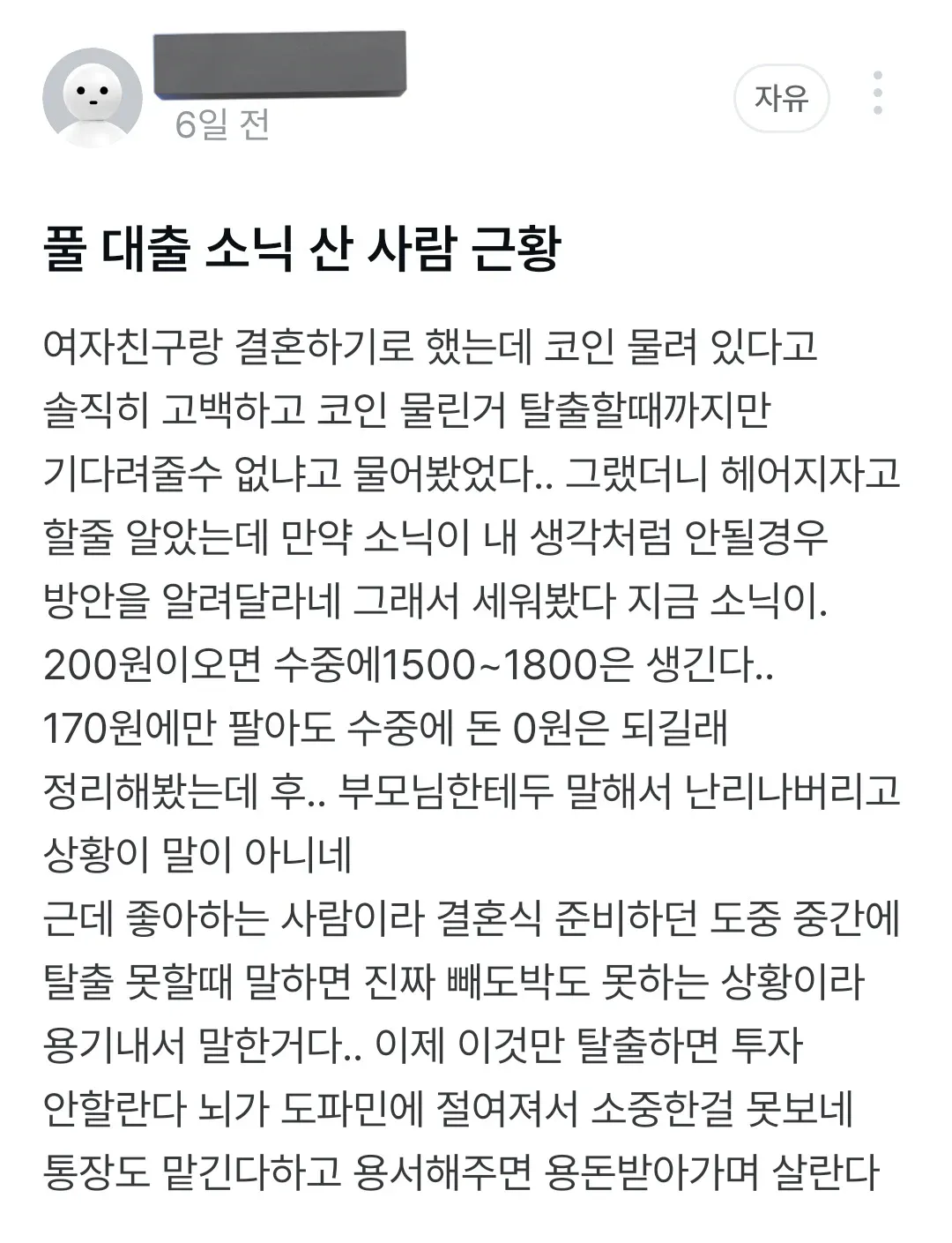 잡 코인에 빚투 영끌한 예비신랑의 향후 계획서