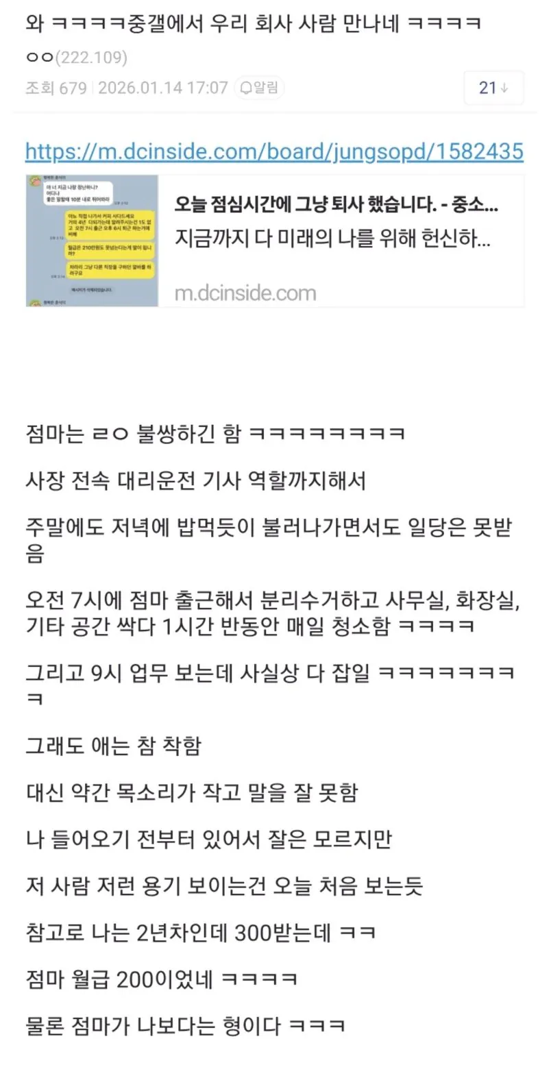 월급 200만원 받고 사장 심부름만하다 퇴사 선언