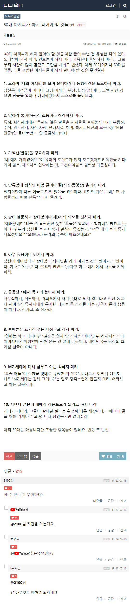 싱글벙글 영포티가 하지 말아야 할 행동