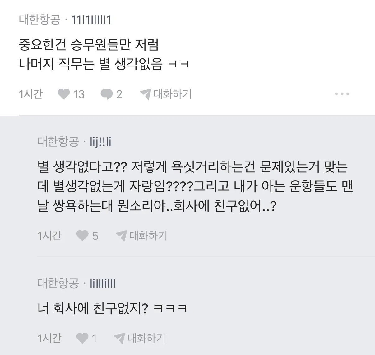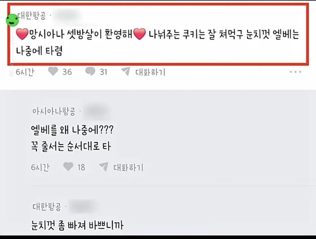 대한항공 아시아나 직원간 기싸움.. 사람들 반응