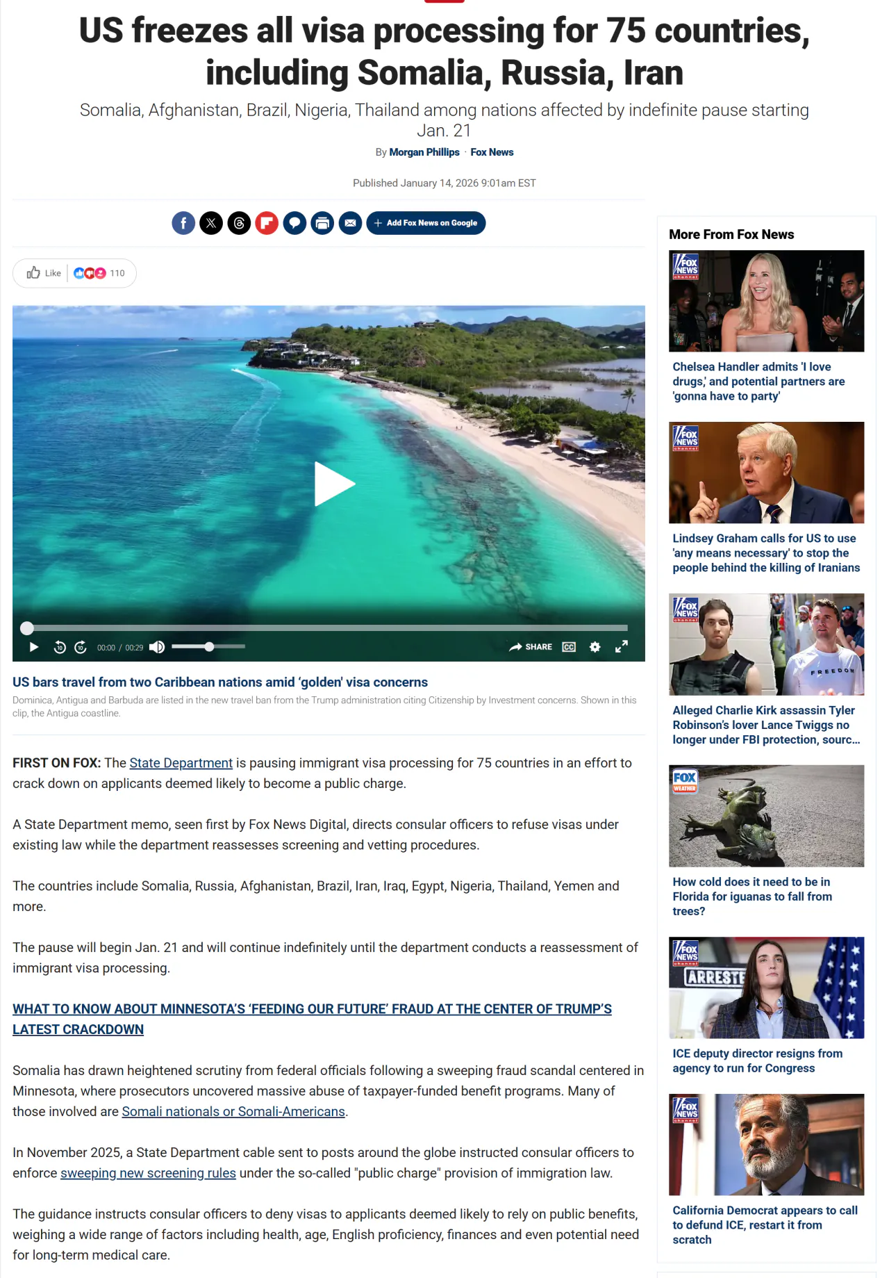 미국이 75개국에 대해 이민 비자 발급 중단시켰는데 리스트에 브라질 타일랜드 이집트등 큰체급들도 들어감... 캐러비안 섬나라들은 거의 전부 중지시켜버렸고