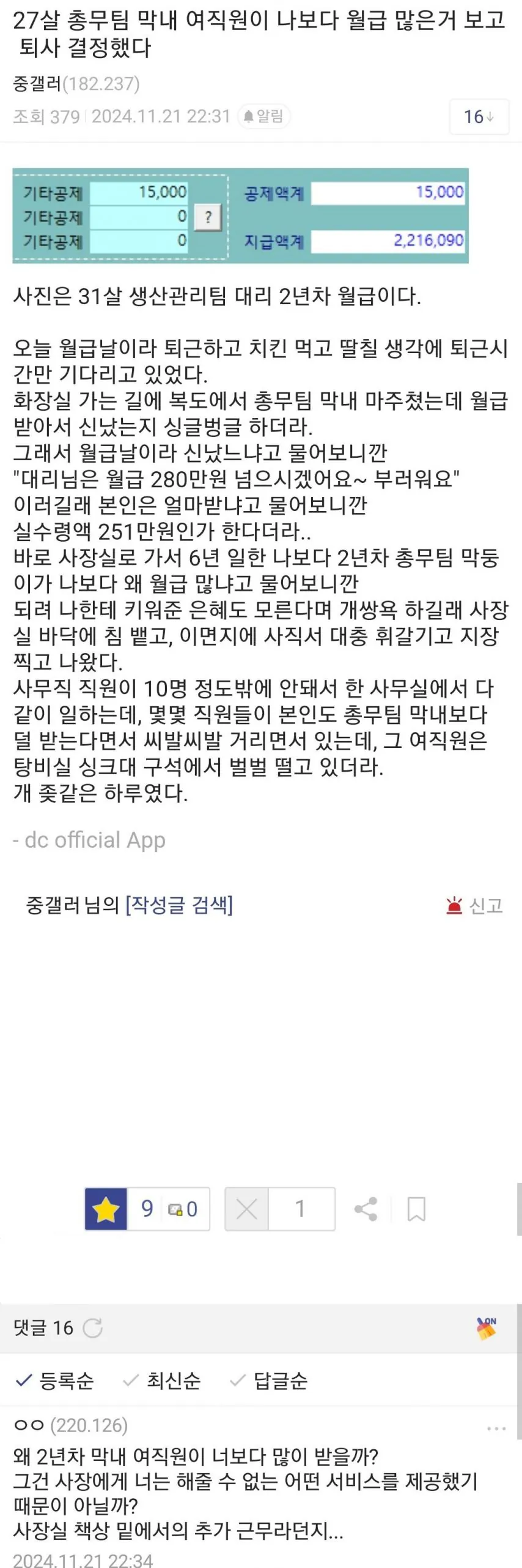 막내 월급 보고 퇴사 결심한 6년차 대리