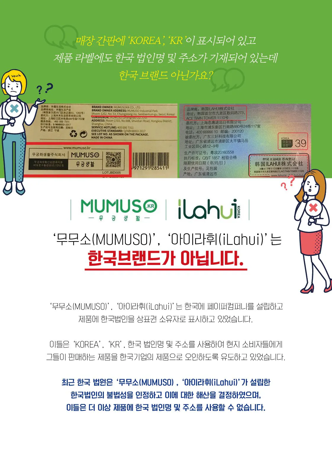저런 한국 사칭이 한국인들에게 발각되어 한국에서 논란이 되고 무무소 매장이 진출한 해외에서도