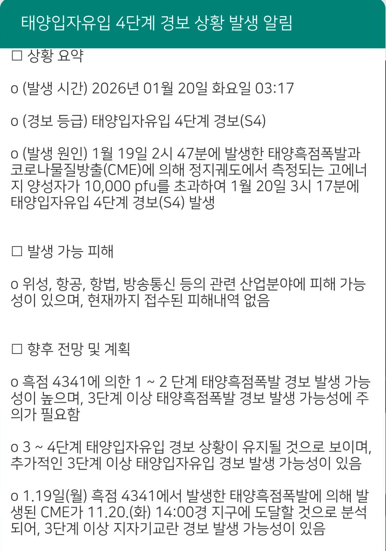 태양 흑점 폭발, S4 단계 격상