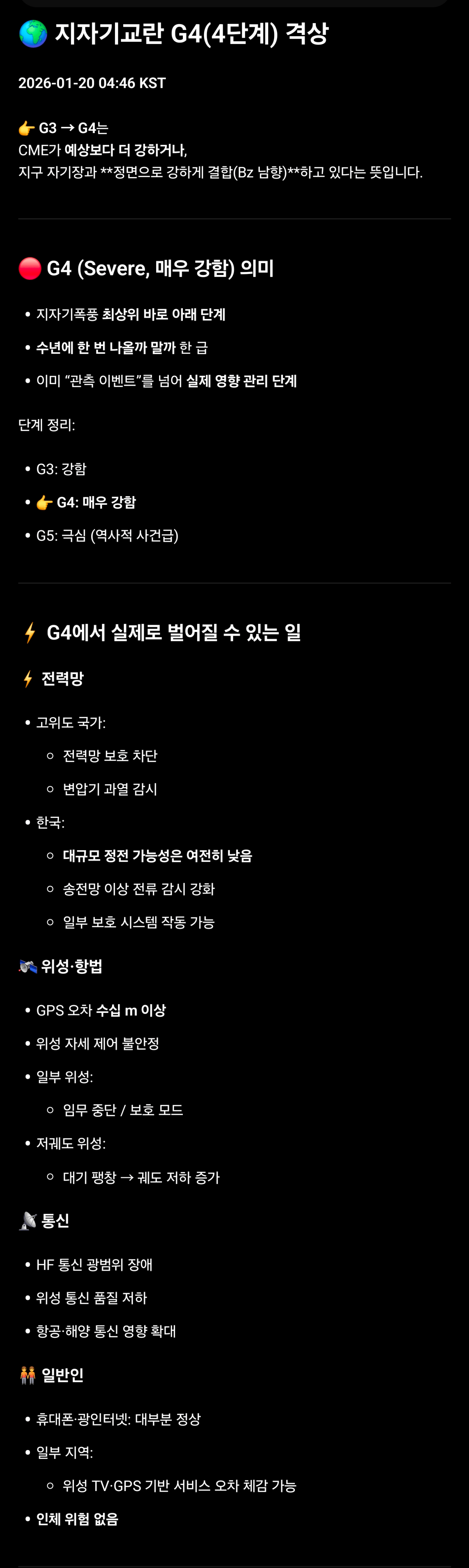 지자기 교란 상황도 3단계로 격상했다가