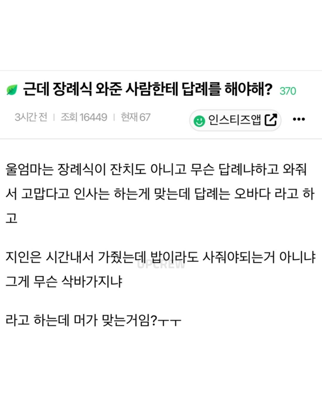 장례식 와 준 사람에게 답례를 해야 되나요?