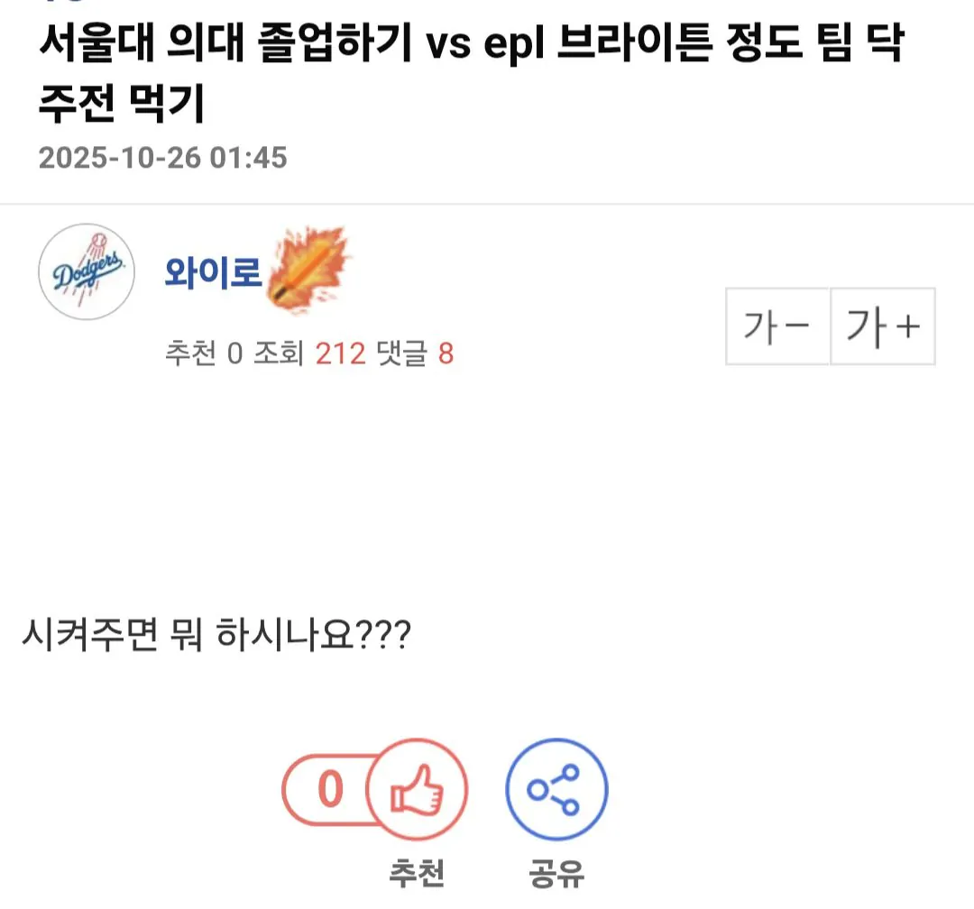 서울대 의대 졸업 vs epl 브라이튼 닥주전 축구선수 되기