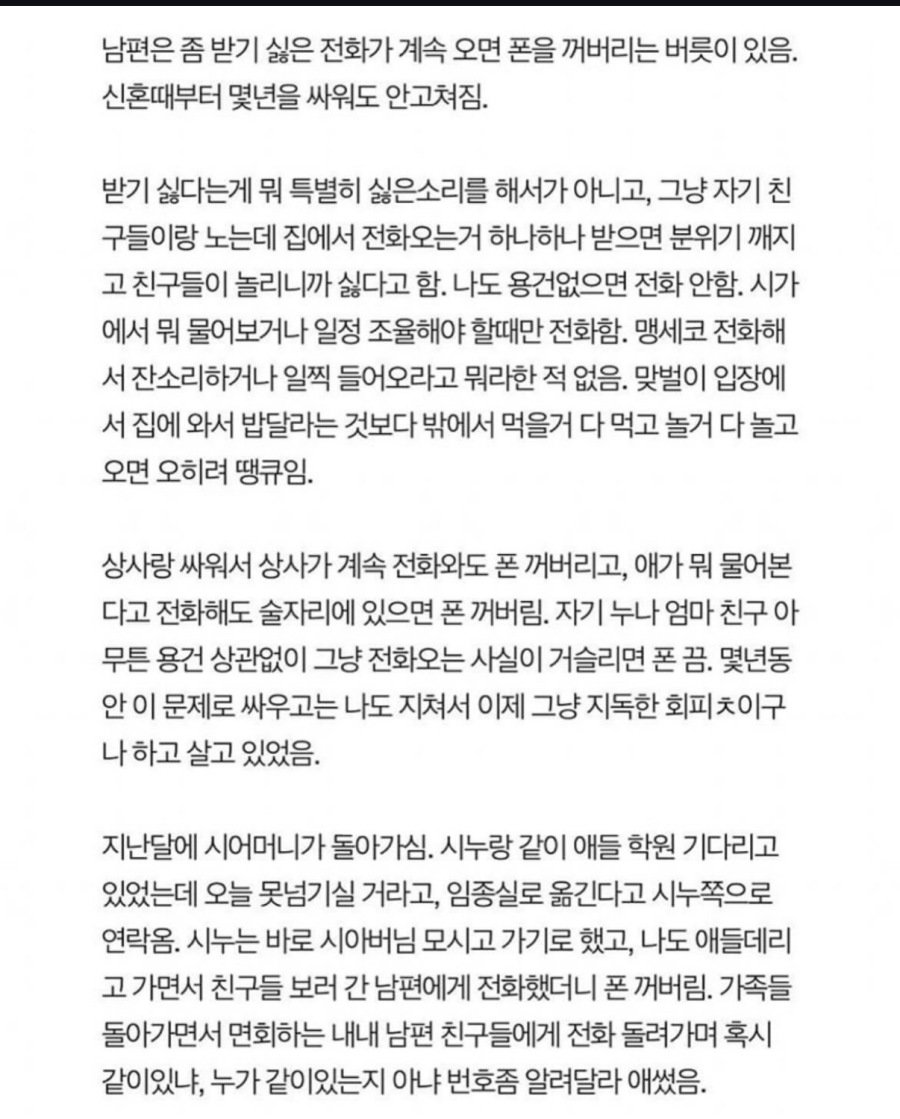 전화를 습관적으로 꺼두던 남편