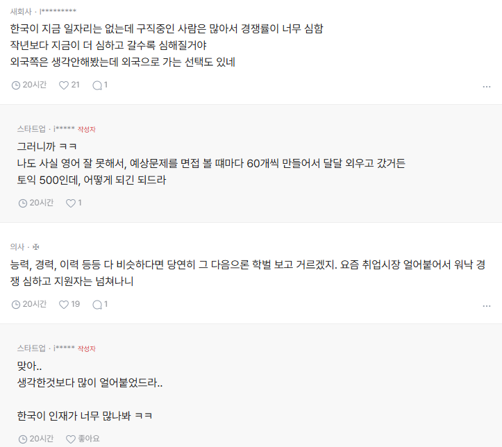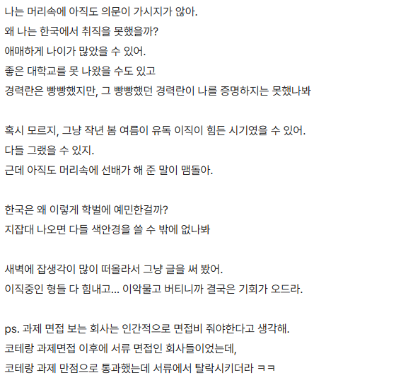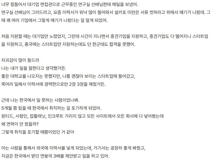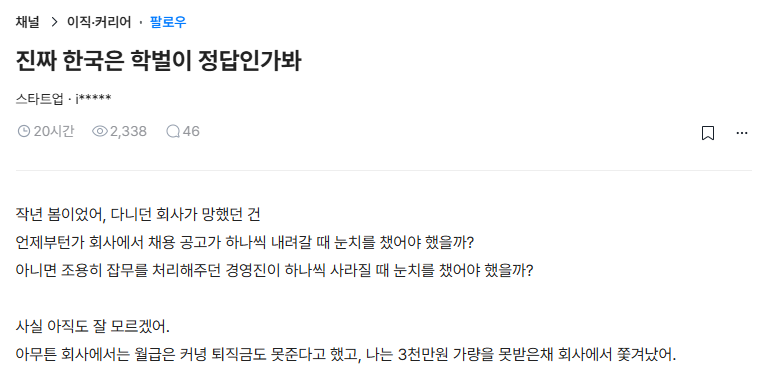 한국에서는 학벌이 최고라는 것을 깨달은 직장인