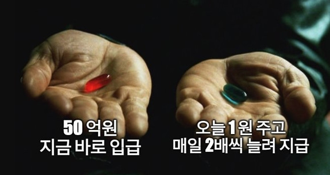 50억 바로 지급 vs 오늘 1원 주고 매일 2배씩 늘려 지급
