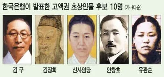 2007년 당시 5만원권 초상인물 후보 10인