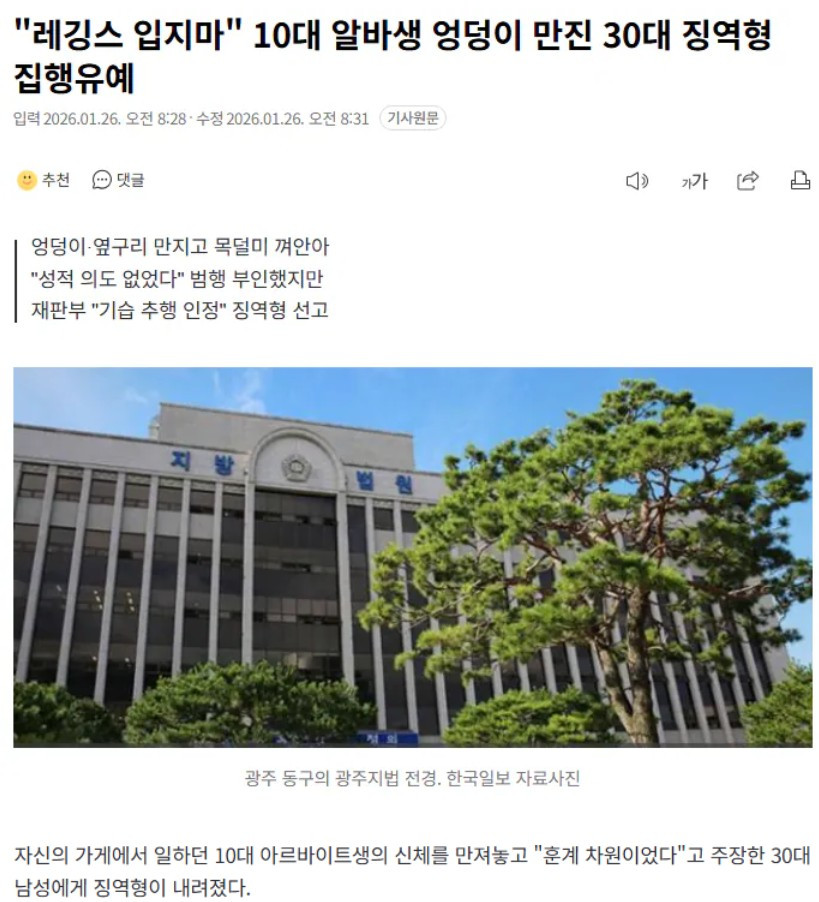 "레깅스 입지마" 10대 알바생 엉덩이 만진 30대