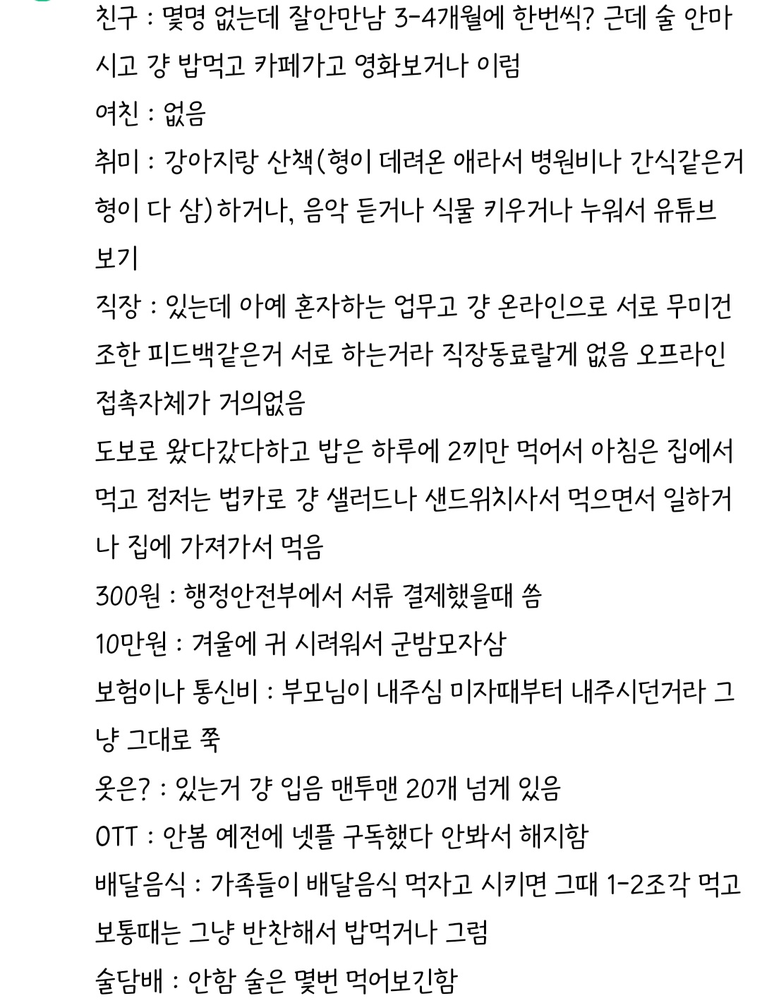 부모님집+집밥+물욕 없음의 콜라보 한달 카드 사용내역