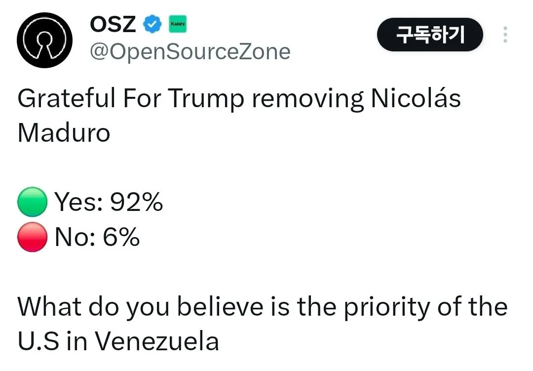 베네수엘라인들 92%가 마두로 체포를 지지