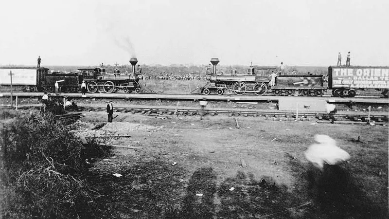 열차회사가 돈도 벌 겸 이벤트로 퇴역 예정인 기차 두개를 부딪히는 쇼를 열기로 하는데