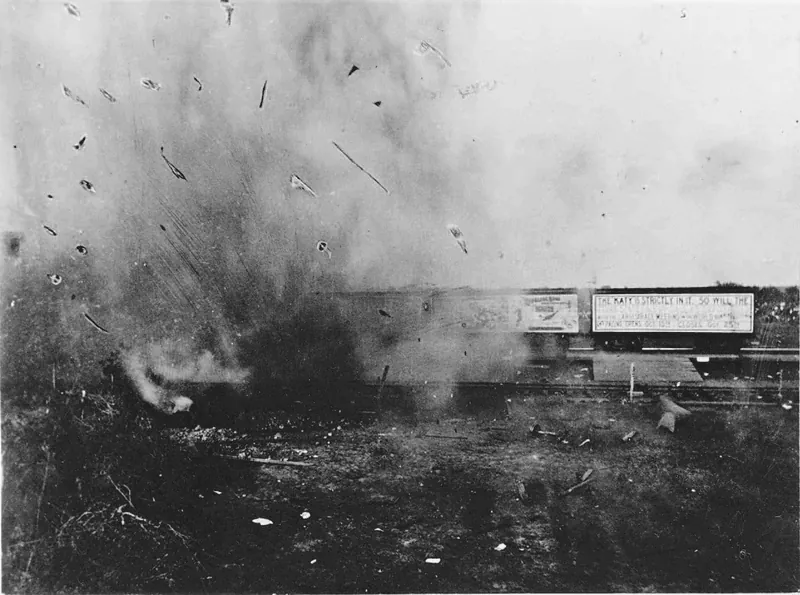 기관사들은 속도를 조절하는 장치에 물건을 올리고 석탄을 미친듯이 퍼부은 다음 달리는 기차에서 뛰어내린 다음에 구경을 시작했고
