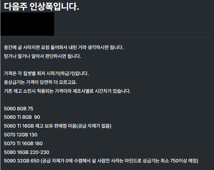 그래픽카드 가격 다음주 인상폭 루머 ㅎㄷㄷ