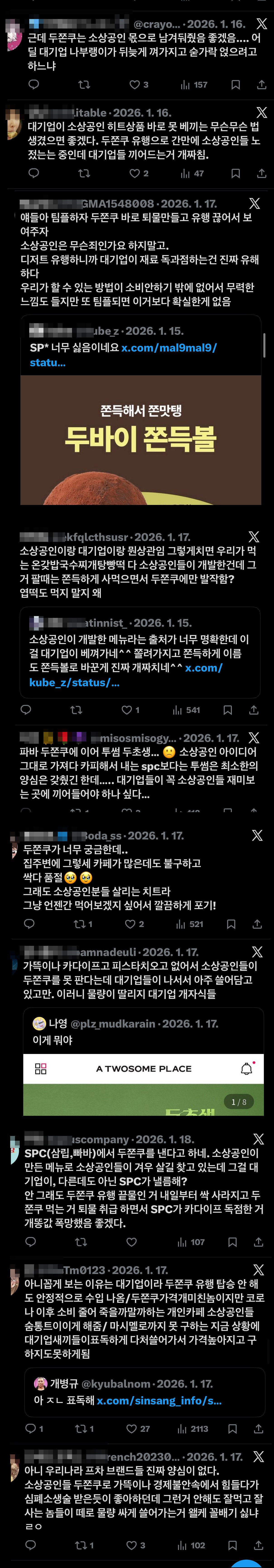 대기업이 두쫀쿠를 만드는 건 악행이라며 두쫀쿠에 자아의탁 중