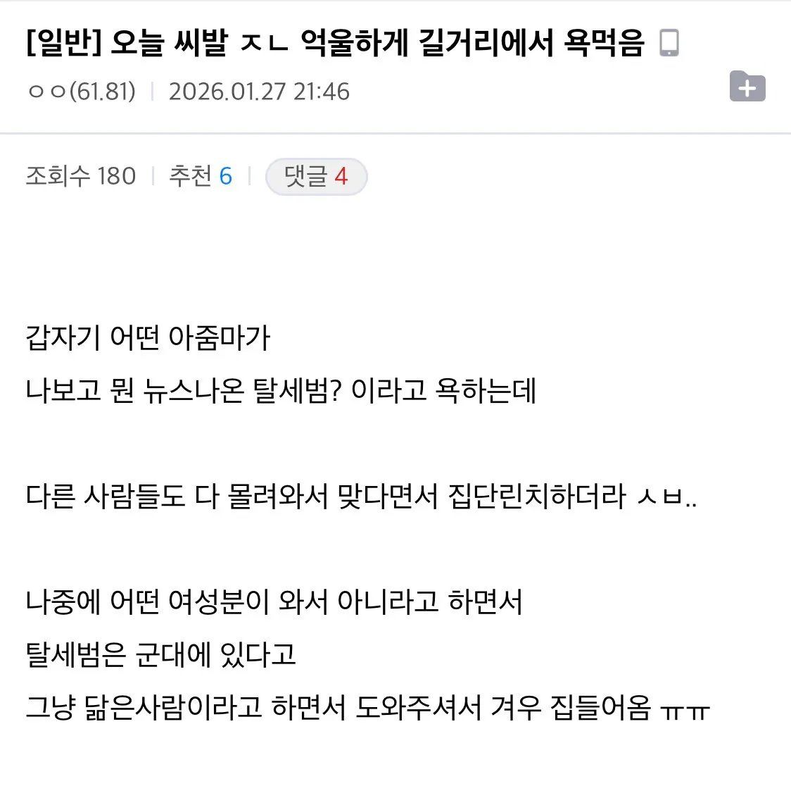 길에서 억울한 오해를 당한 허언증갤러