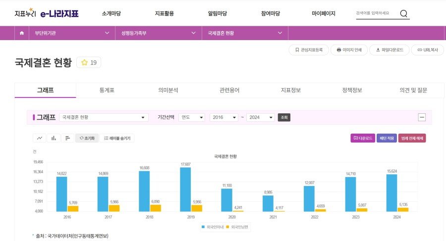 코로나 시기 지나고 1년에 국제결혼 건수는 2만건대 정도입니다 전체 결혼의 7~10퍼센트 정도는 되는듯