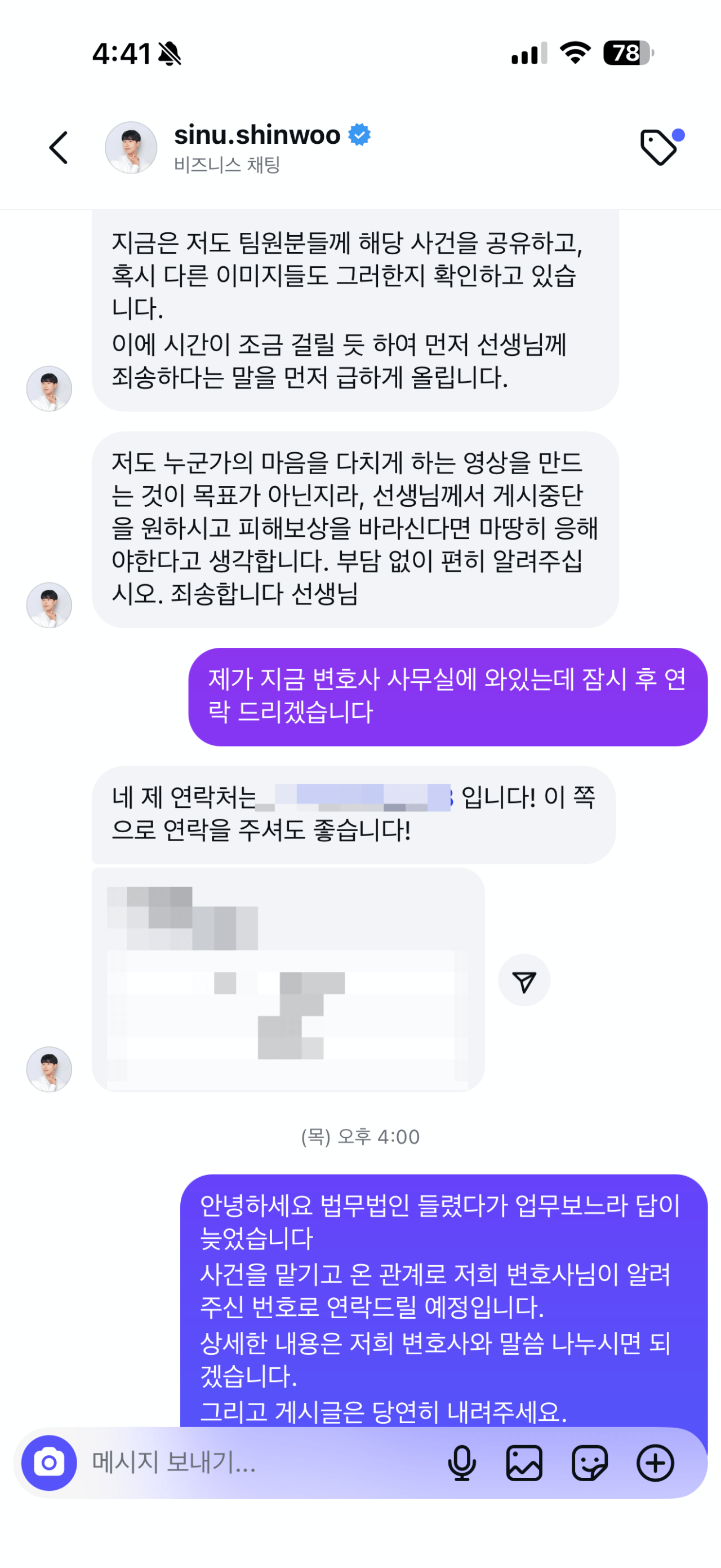 제가 저분께 피해를 입혀봐야 좋은 일도 없고, 아직 젊은 분이기에 그냥 진정성 있는 공식사과와 합리적인 보상으로 좋게 마무리 지을까 하는 생각도 했었습니다만…