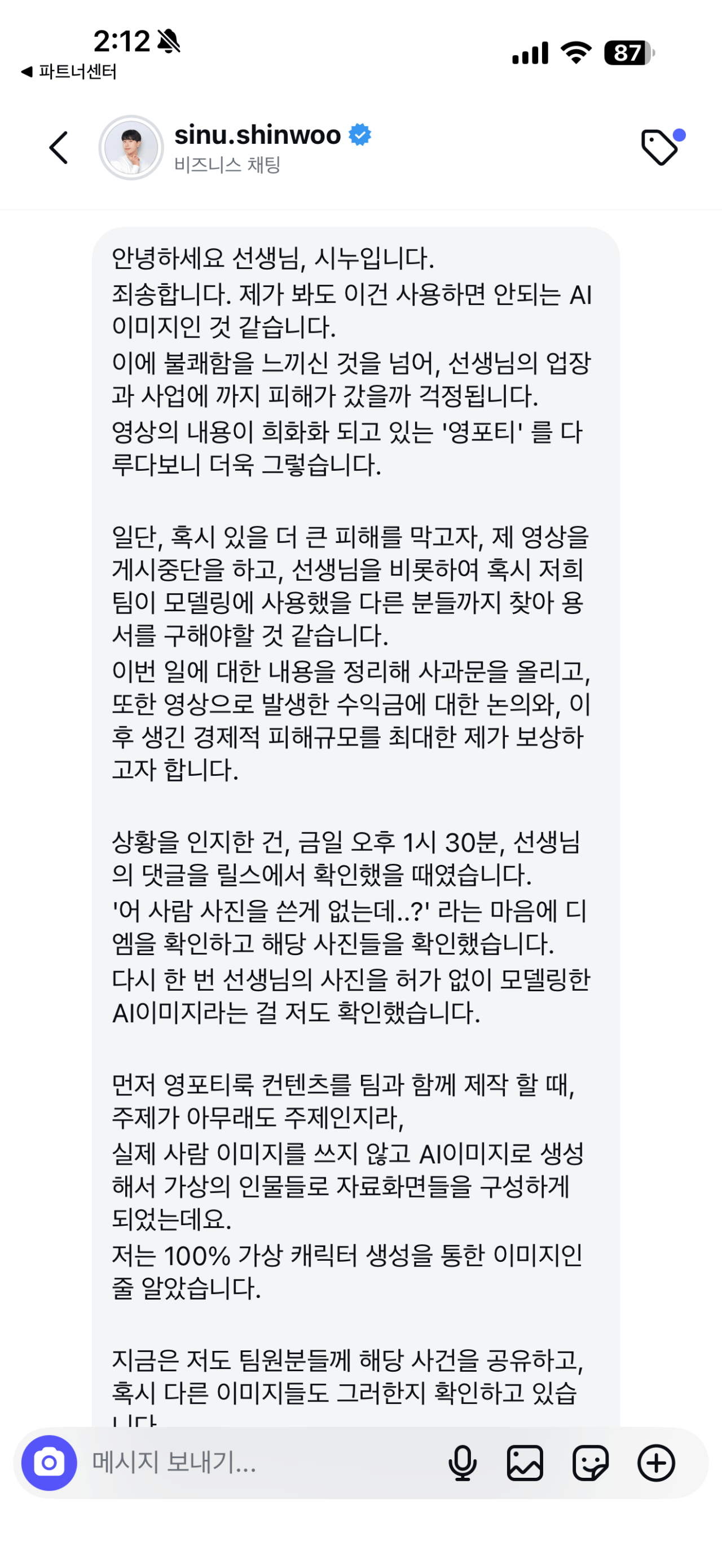 다른분들 얘기 들어보니 저 사과문도 AI로 작성한 것 같다는데 참 기가 찹니다.