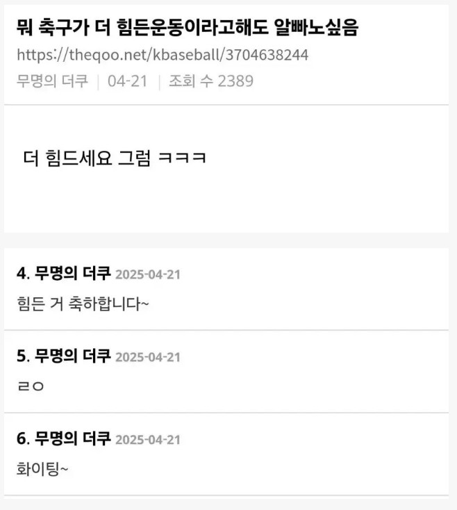 여초의 야구보다 축구가 더 힘든 스포츠 반응