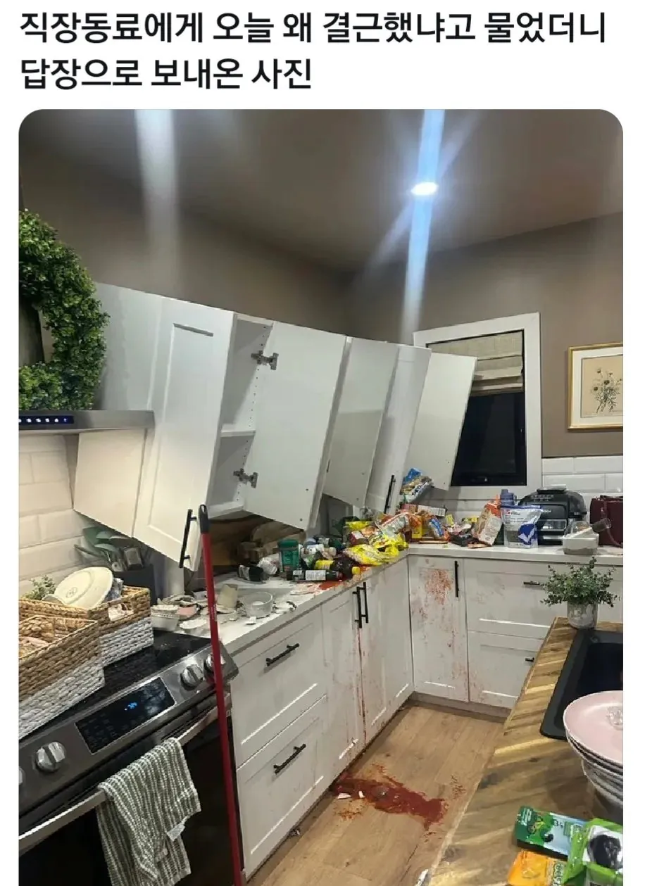 오늘 왜 결근했냐고 물었더니 답장 보낸 사진