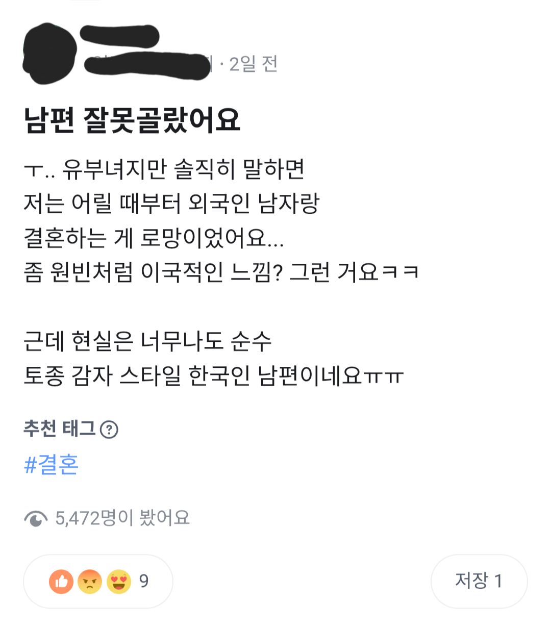 남편 잘못 골랐다는 당근 유부녀
