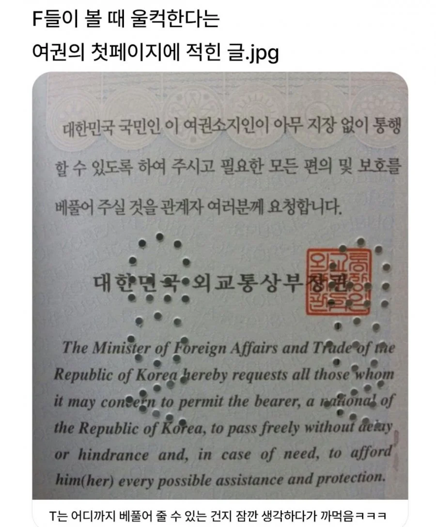 MBTI F들이 볼때 울컥한다는 여권 첫 페이지