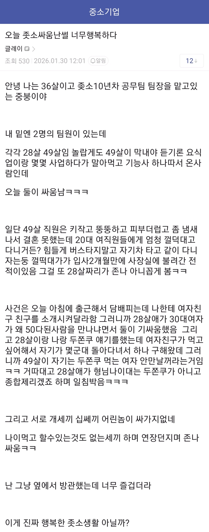 49살 막내직원이랑 28살 직원이랑 회사에서 싸움남