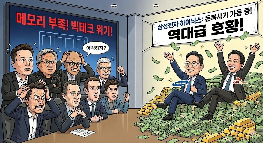 시장의 해석: 마이크로소프트가 힘들다고 불평할수록, 메모리 공급사(삼성, 하이닉스)는 '부르는 게 값'인 슈퍼사이클에 진입했다는 강력한 증거가 됩니다.