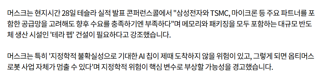 컨콜에서는 AI뿐만 아니라 기존 사업인 PC(Windows OEM)와 일반 서버 시장에서도 메모리 가격 급등과 SSD(낸드플래시) 부족으로 인해 비용 압박을 받고 있다고 언급되었습니다. 이는 삼성전자와 SK하이닉스가 가격 협상에서 확실한 우위에 있음을 시사합니다.