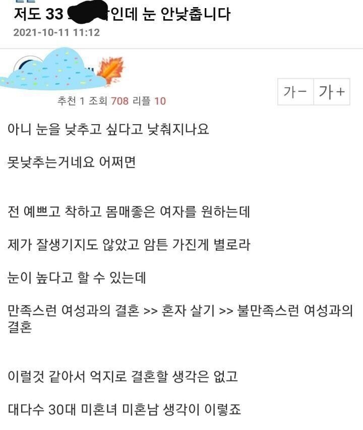 남초여초 모두 공감얻는 30대 미혼남녀 생각