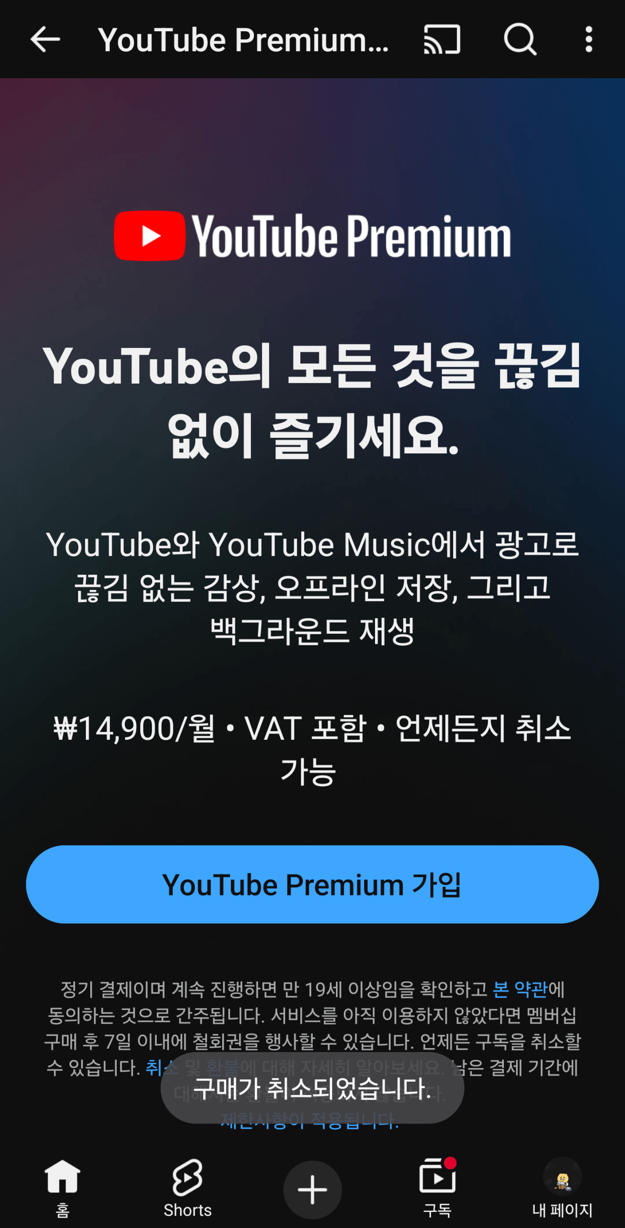 (속보) 유튜브 프리미엄 라이트 가입 가능