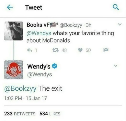디스하는 똘끼를 보여준 웬디스는