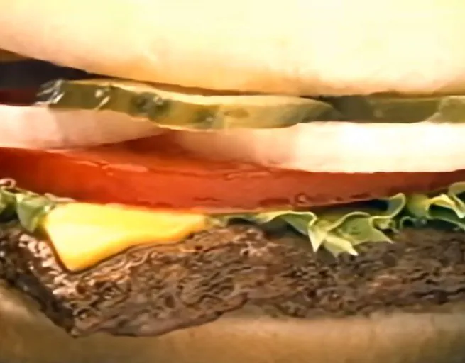 이 광고는 당시 빵보다 작은 패티를 만들어오던 햄버거 패스트푸드점들