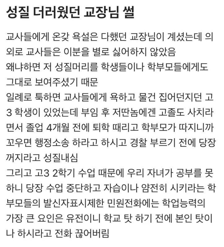 성질 더러웠던 어느 학교 교장님 썰