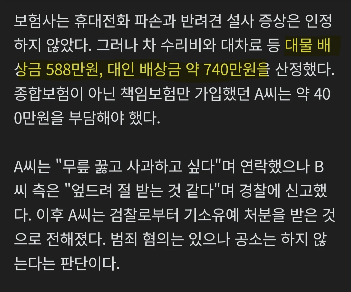 -> 보험사 산정 1,260만원 배상