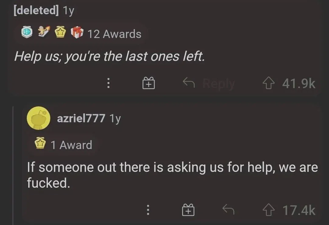 "구해줘, 너네가 유일하게 남은 생존자야"