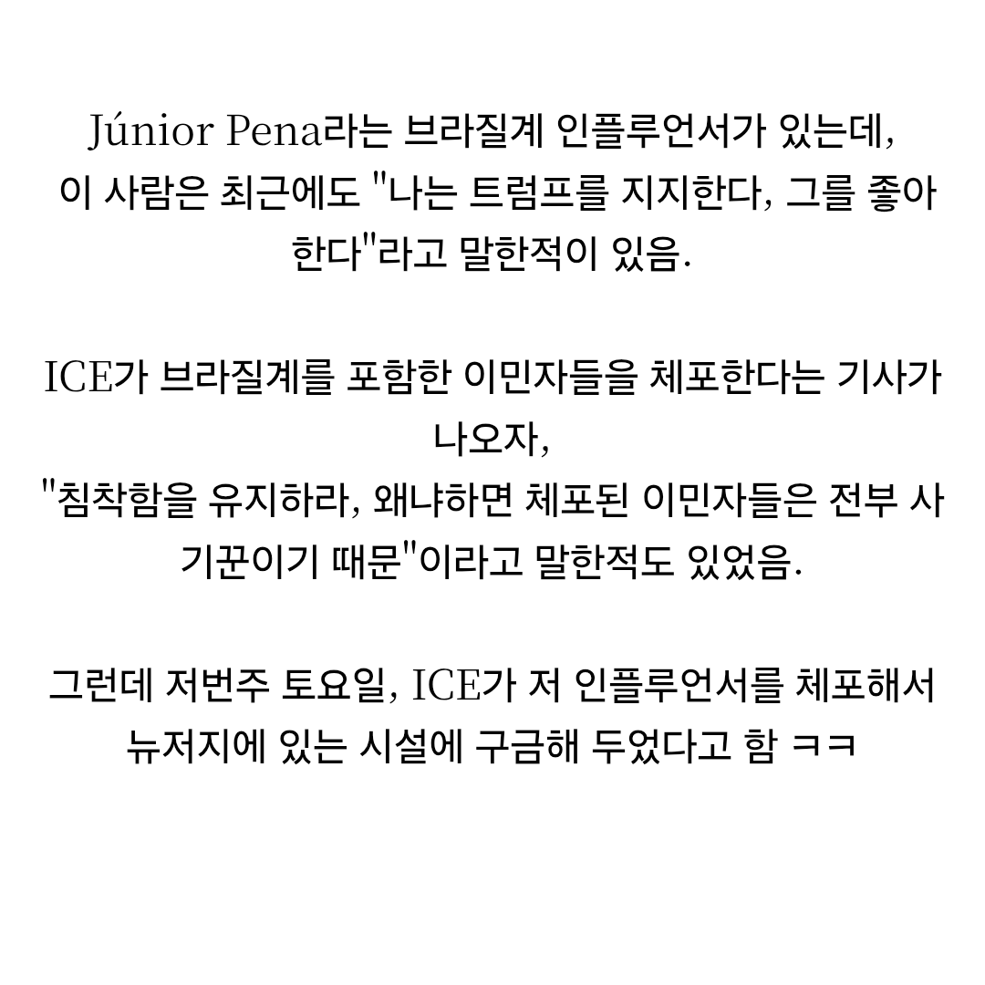 트럼프 옹호하던 브라질계 인플루언서, ICE에게 체포 됨