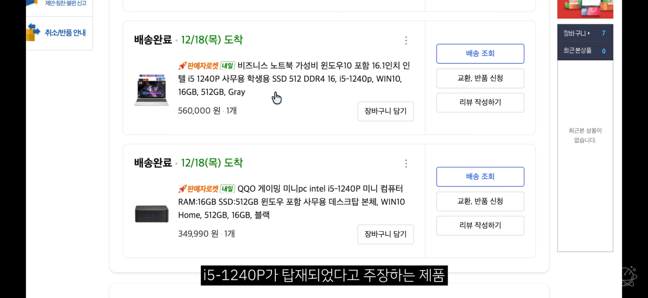 쿠팡에서 파는 i5-1240P를 탑재했다고 하는 미니 PC..