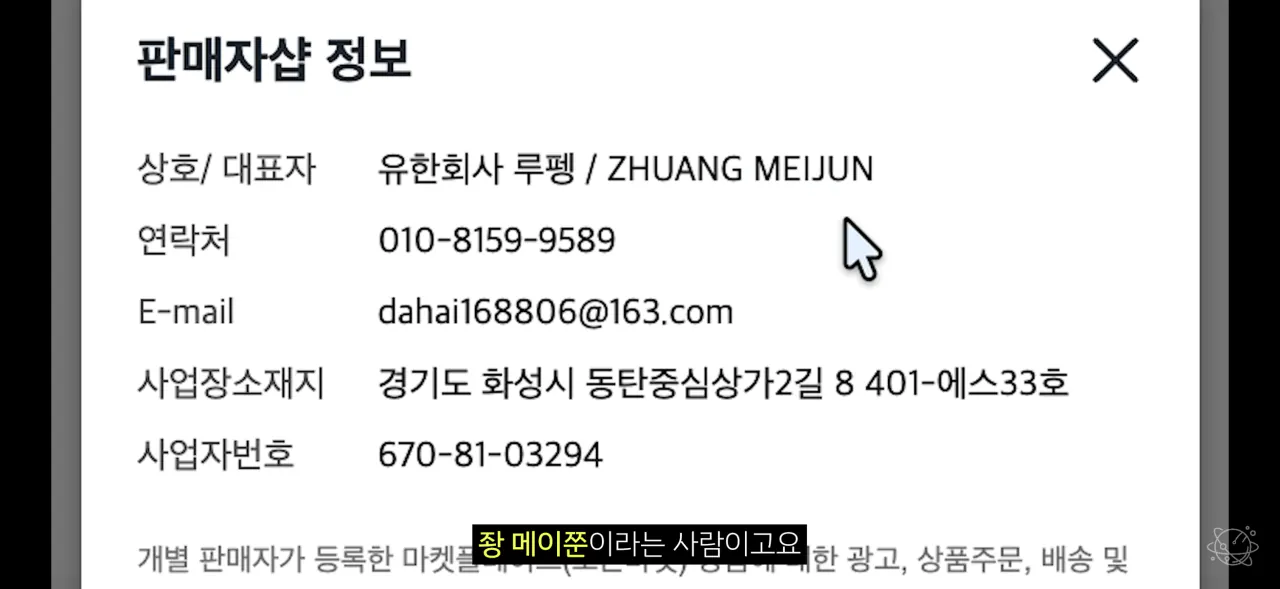 (다른 판매자 3명이지만 이메일이 같고 주소 호수만 다름 아마 본사는 중국에 있고 사무실 주소만 공유오피스로 해놓은 것으로 추정)