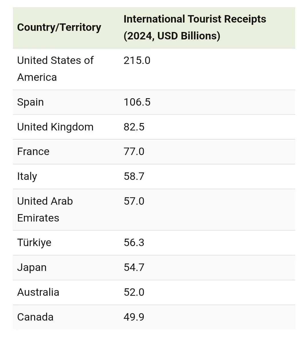 또한 프랑스 해외 관광 수입이 스페인은 물론 영국보다 낮은거에서 볼 수 있듯이 프랑스 여행은 스페인처럼 휴양이나장기 투숙보다는 랜드마크 관광 및 단기적으로 볼거리 보고 역사유적 들르고 가는 형태가 상대적으로 많다고함.