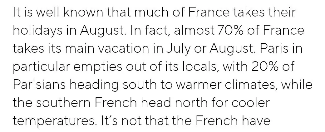 게다가 파리조차 관광객들이 많이 오는곳은 주로 역사적 파리라 불리는 구시가지고 실제 외곽 생활권과는 또 다른데다 성수기에는 어차피 프랑스인들 그 자신도 파리를 떠나 다른 지역으로 여행을 가기에 체감 불만이 덜할수 밖에 없다고 함.